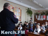 Юные участники дорожного движения продемонстрировали свои работы инспектору по пропаганде безопасности дорожного движения ОГИБДД УМВД России по г.Керчи Алексею Крихели.