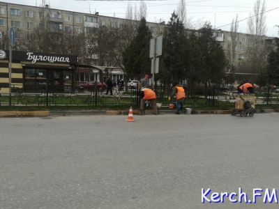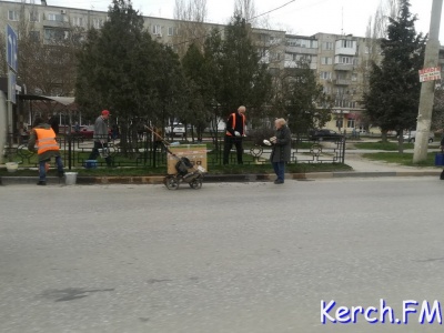 В Керчи 2 апреля работники в специальных светоотражающих жилетах моют и красят забор. Как передает корреспондент Керчь.ФМ, работы идут около пешеходного перехода на КУОРе.