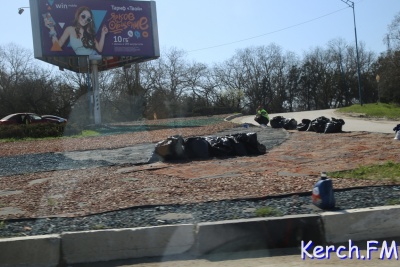 В Керчи с транспортного кольца на Чкалова снимают декоративный цветной щебень
