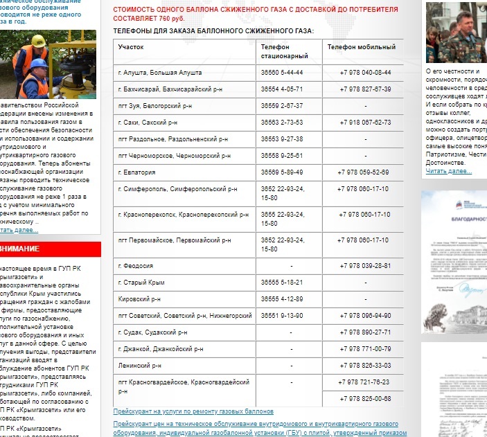 «Специалисты «Спецгаза» в кратчайшие сроки обслужат вашу заявку, доставят баллон, подключат к газовой плите, проверят безопасность работы газовых приборов. Кроме того, только ГУП «Крымгазсети» обеспечивает круглосуточный выезд аварийной бригады для локализации аварий и утечек газа, ни одно другое предприятие, занимающееся реализацией баллонов, не сможет быстро среагировать при возникновении внештатной ситуации», - сказал Тарасов.