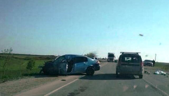 ДТП произошло в районе села Ерофеево Ленинского района. По неизвестной пока причине столкнулись грузовик и легковая машина.
