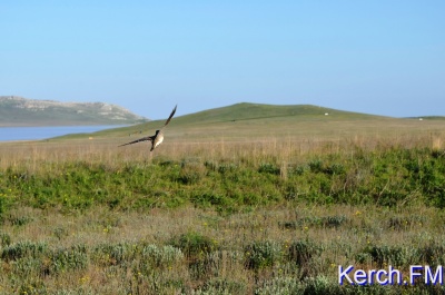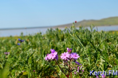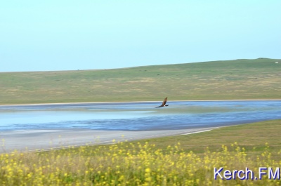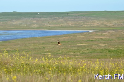 Грунтовая дорога от Марьевки, если держаться правой стороны между заповедником и полигоном, привела к песчаному берегу моря. С одной стороны цветущие поляны и озеро, с другой синяя гладь морской воды. Территория заповедника начинается за вспаханной полосой земли.
