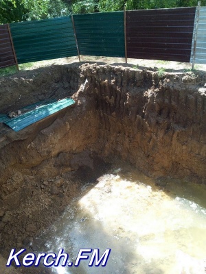 В Керчи, в районе Дружбы, вырыли глубокую яму и огородили листами железа. В ней стоит вода. Фото в редакцию Керчь.ФМ прислали постоянные читатели.