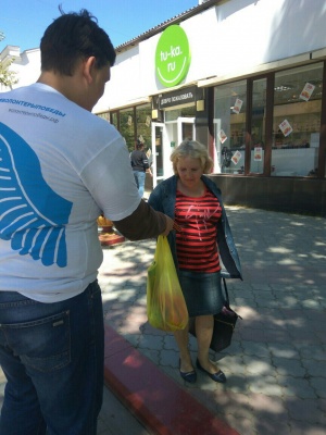 Волонтеры Керчи раздавали георгиевские ленточки в центре города