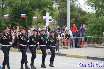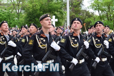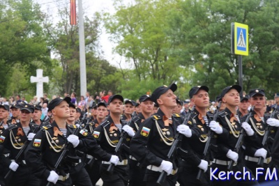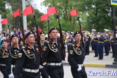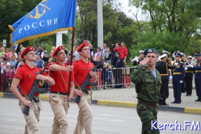 В параде принимали участие юнармейцы, бойцы Черноморского флота, железнодорожные войска, полк радиационной, химической и биологической защиты, представители ракетных войск, рота МЧС и другие.
