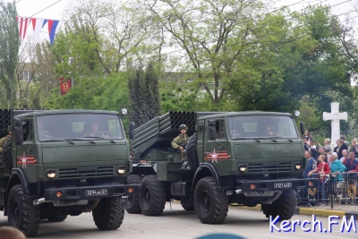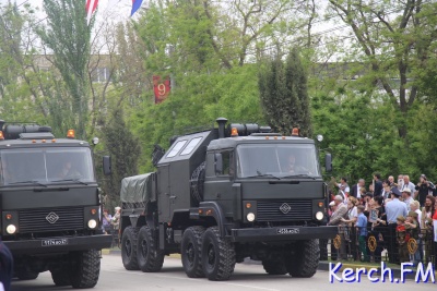Бронированные машины «Барс», БТРы, установка залпового огня «Град», комплексы С-400 и другая техника участвовали в Параде Победы в Керчи, - передает Керчь.ФМ.