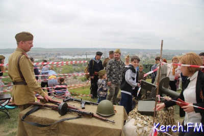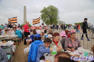 На горе Митридат продолжился концерт с выступлением вокалистов города. Рядом расположились столы и палатки, в которых можно было приобрести еду.