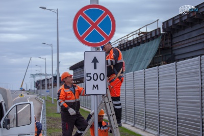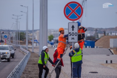 На всем протяжении моста установлено более 60 стандартных знаков, указывающих километраж и направление движения. Встречать водителей при заезде на мост со стороны Крыма или Кубани будут знаки индивидуального проектирования с официальным названием объекта.
