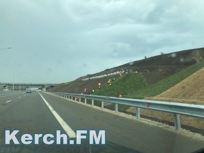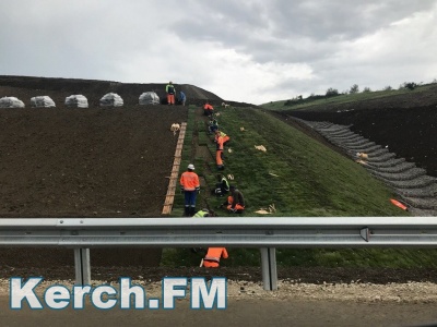 Хотя автоподход к Крымскому мосту уже открыт, автомобилисты еще могут наблюдать работы на разных участках дороги. Так, в частности, 20 мая рабочие укладывали газоны на обочине. Фотографиями с редакцией Керчь.ФМ поделились читатели