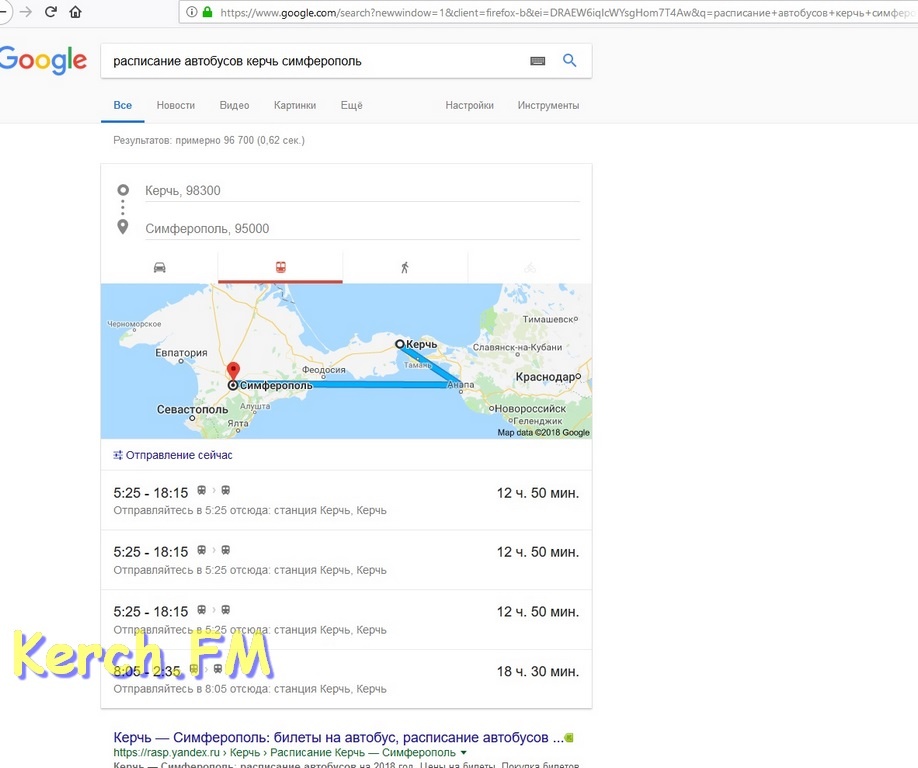 Поисковик предлагает, минуя строительство трассы «Таврида», воспользоваться автобусом по маршруту Керчь-Анапа-Симферополь, - передает Керчь.ФМ.