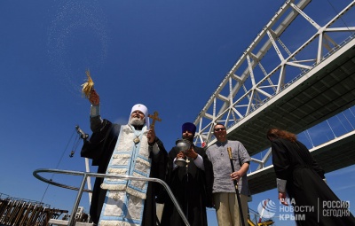 В Керчи стартовал морской крестный ход, в рамках которого митрополит Феодосийский и Керченский Платон освятил Крымский мост. Молебен проводился на парусном катамаране «MERI II» во время научно-образовательной экспедиции «Крымская кругосветка». Об этом сообщает РИА Крым, - передает Керчь.ФМ