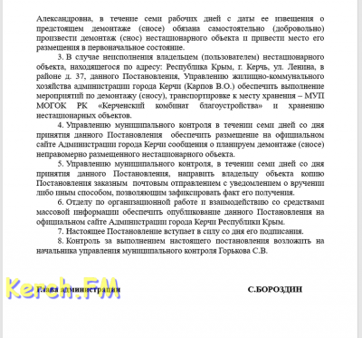 Продавец показала паспорт привязки, на котором обозначен ларек с сувенирами. А вот на шарики паспорт привязки не придумали еще. Все бы ничего - чиновник он на то и чиновник, чтобы порядок в городе держать. Но обиделся он, не уважили душеньку чиновника керченского. И, буквально через день, случилось заседание аж целой комиссии, которая решила-постановила снести ларьки. На место, понятное дело, эта комиссия и не выходила, посидела, а, может, и не сидела даже, так, на слово поверили чиновнику.