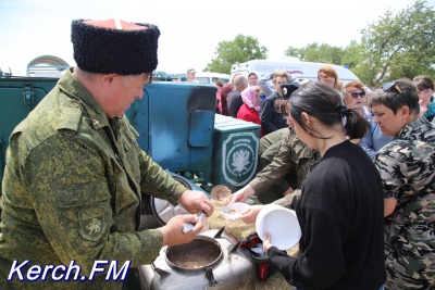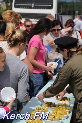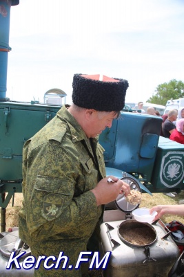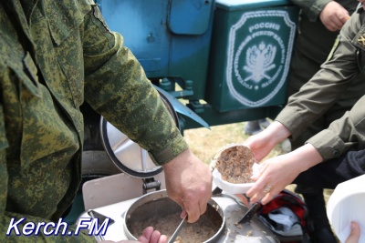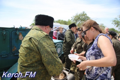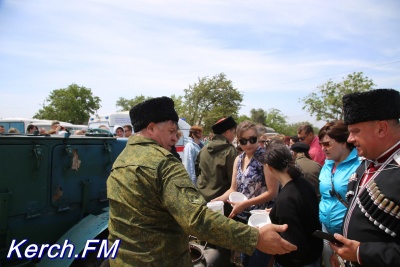 В Керчи после театрализованного представления в Аджимушкае присутствующих пригласили отведать полевую кухню. Как передает корреспондент Керчь.ФМ, кашу керчанам раздавали казаки, они также давали чай и помидоры.