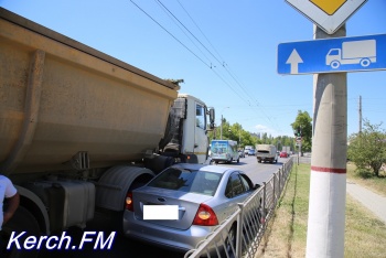 В Керчи грузовик притер легковушку