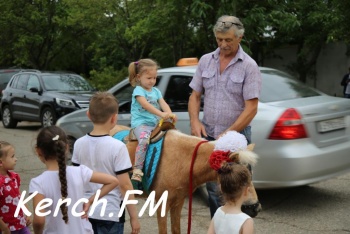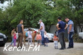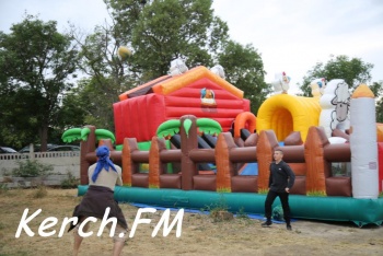 На территории мечети установили надувной батут. Рядом подростки играли с футбольным мячом. Кроме этого, детишек катал осел.
