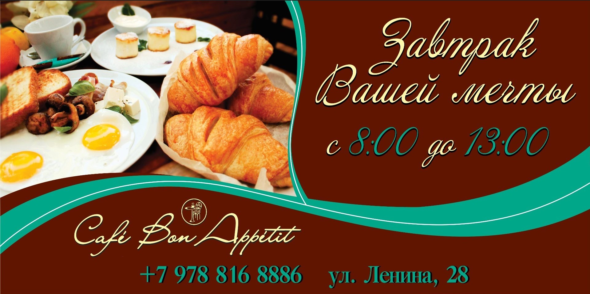 С момента открытия кафе Bon Appetit нами было сделано для Вас 32 436 сырников. Цифра внушительная? А мы ни капельки не удивлены. Ведь завтраки для нас - самый важный и определяющий прием пищи. Как начался Ваш день? Поверьте, если Вашим делам будет предшествовать вкусный кофе из 100% Арабики и французский круассан, день пойдет как по маслу.