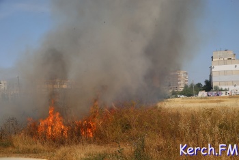 В Керчи 22 июня на Блюхера горела сухая трава. На месте пожара работали сотрудники МЧС.