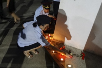 В парке Летчиков полицейские почтили минутой молчания память героев Великой Отечественной войны, погибших при выполнении служебных обязанностей сотрудников органов внутренних дел. С зажжёнными свечами сотрудники полиции возложили цветы к мемориалу погибших воинов, героическим защитникам Керчи.
