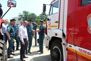 В Керчь с рабочим визитом приехал первый заместитель Министра МЧС России Александр Чуприян. В ходе посещения пожарно-спасательного подразделения он высоко оценил готовность личного состава к несению службы, пообщался со спасателями и пожарными, а также осмотрел технику, которая стоит на вооружении части.