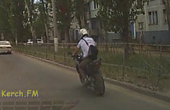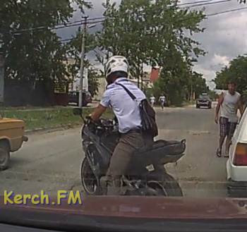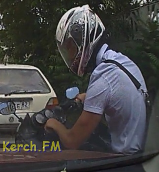 Вчера на таксопарке мопедист повредил автомобиль и уехал с места ДТП. Видео произошедшего прислал в редакцию Керчь.ФМ водитель легковушки.