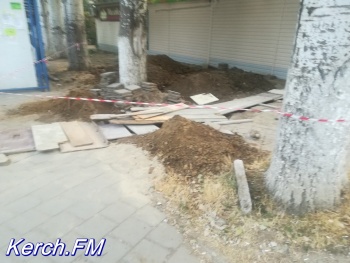 Другие керчане сообщили, что уже вечером 4 июля яму на дороге заасфальтировали. А вот тротуар накрыт досками. Керчане предположили, что это проводил себе воду одни из ларьков на рынке.