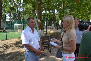 Следующим объектом, который посетил Владимир Константинов, стал ГБОУ РК «Керченский учебно-воспитательный комплекс — интернат «Лицей искусств». Руководитель образовательного учреждения Валерий Арустамян провел гостей по территории, показал обновленную площадь во дворе, новые окна в учебных корпусах и другие нововведения.