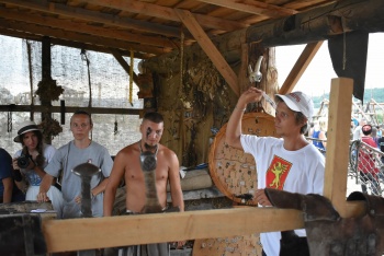 Александр Милютин завоевал первое место в первенстве по гиревому спорту. А для знатоков истории была проведена интеллектуальная игра-квест «Из глубины веков», где можно было опробовать свои силы в метании ножей и копий, ковке стрел в кузнице, знании истории язычества и периода крещения Руси. «Керченские варяги» стали лучшими в знании древнеславянских богов.