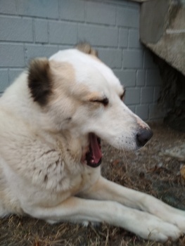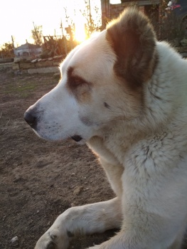 Пропала взрослая собака породы «Алабай», белая с рыжими пятнами.