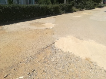 В Керчи на перекрестке ул. Колхозная и Зябрево уже не первый год находится яма, которая осталась после работ водоканала. Яму даже пытались ремонтировать - вырезали ровный край и засыпали щебнем. Но со временем щебень размыло и яма опять стала глубокой. Сейчас ее отремонтировали, засыпав края тырсой. Фото в Керчь.Фм прислали постоянные читатели.