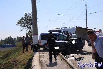 В Керчи 6 августа днем на Горьковскому мосту столкнулись четыре машины. В результате ДТП две машины вылетели на тротуар. Как передает журналист Керчь.ФМ с места событий, водитель «ВАЗа» - погиб. Также есть еще пострадавшие в других машинах.