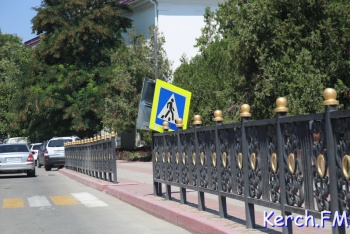 В Керчь.ФМ постоянный читатель прислал фотографию сломанного дорожного знака "пешеходный переход" на улице Театральной