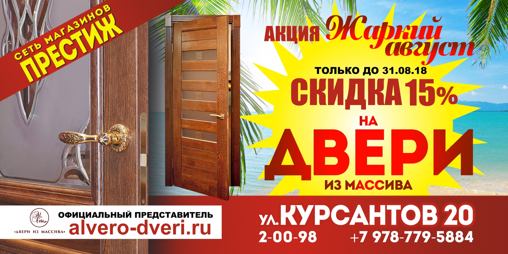 Акция «Жаркий август»! СКИДКА 15% на двери из массива!