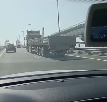 По Крымскому мосту начали ездить грузовые автомобили. Фото в редакцию Керчь.ФМ прислали постоянные читатели.