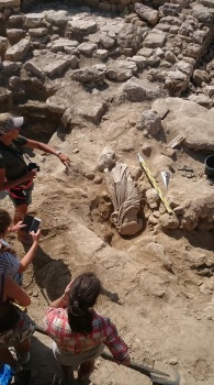В комментариях под фото Бутягин сообщает, что статую нашли «в завале гибели усадьбы 2 внэ. Опирался, видимо, на колонну, но она не сохранилась».