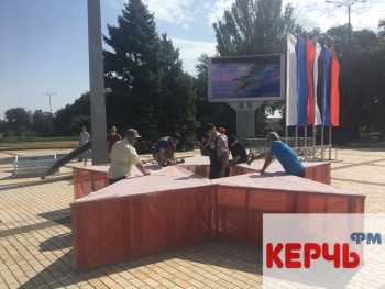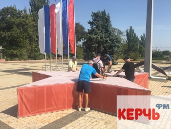 В Керчи 3 сентября на площади Ленина устанавливали трибуну со звездой. Также, рядом установили флаги. Звезду ставят в честь празднования 45-летия, как Керчи присвоили звание города-героя, - передает Керчь.ФМ