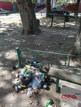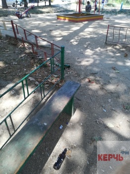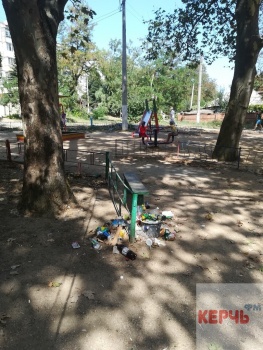 В Керчи детская площадка по Орджоникидзе, 90, завалена мусором. Также по площадке валяются бутылки из-под спиртного. Фото в Керчь.ФМ прислали постоянные читатели. Керчане отмечают, что рядом также стоят мешки с мусором и коробки, в которые мусор убирали, но не вывезли.