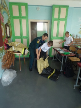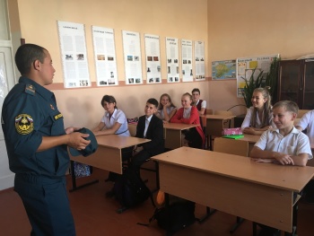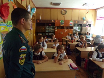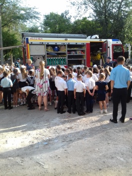 В День знаний учащимся напомнили о необходимости соблюдения основных правил безопасного поведения во время учебы, в быту и на природе. Так же были доведены детям элементарные правила осторожного обращения с огнем и обучили их умению правильно действовать в случае возникновения пожара. Особое внимание во время занятия уделено средствам индивидуальной защиты органов дыхания и первичным средствам пожаротушения. Дети с большим интересом слушали сотрудников МЧС, задавали интересующие их вопросы.
