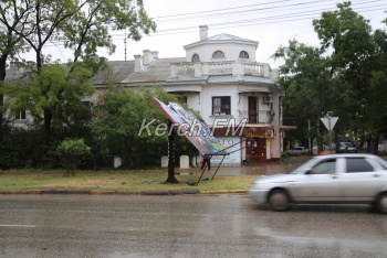 В Керчи сильный ураганный ветер поломал рекламный щит в районе Военкомата. Как передает корреспондент Керчь.ФМ, конструкцию согнуло пополам, также над дорогой висит провод.