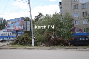 В Керчи 11 сентября в городе убирают последствия шторма, который повалил деревья и билборды. На улице Горького рабочие магазина пытаются самостоятельно спилить дерево, которое упало на магазин, - передает Керчь.ФМ