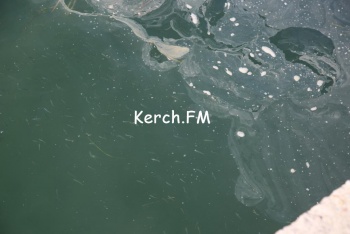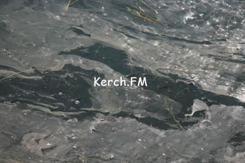 Мальки пытаются пробраться к верху. Однако, им мешает пленка с нефтепродуктов. Керчане опасаются, что из-за этого может погибнуть рыба. На месте происшествия никто не работает.
