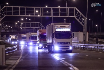 В числе первых с материка на полуостров проехали авторефрижераторы с молочными и мясными продуктами питания, а также фуры со стройматериалами. По встречному направлению двигались машины с продукцией винодельческих предприятий Крыма. За ночь мост принял более 700 грузовиков, из которых около 300 на Тамань и почти 400 - в Керчь.