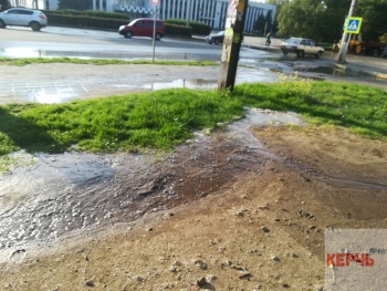 В Керчи утром 2 октября, у кольца на «Институте» чистая вода напором текла из-под земли. Река лилась по тротуару и проезжей части, - передает Керчь.ФМ.
