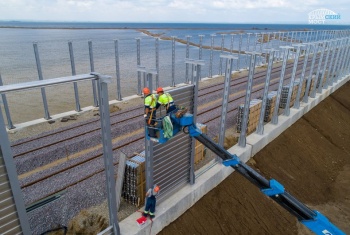 Акустические экраны устанавливаются на участках сопряжения Крымского моста с железнодорожными подходами к нему с двух берегов. Формируются сплошные шумопоглощающие стенки длиной почти 410 и 480 метров со стороны Керчи и Тамани соответственно. Об этом сообщает инфоцентр «Крымский мост», - передает Керчь.ФМ