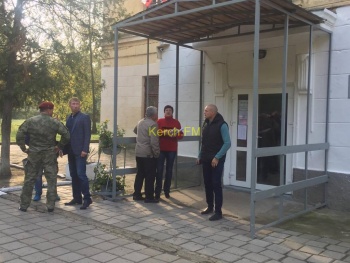 Около 10.00 к корпусу подошли люди в масках. Им дали указания. Ждут приезда Сергея Аксенова. Он сначала встретится с учениками, а после - выйдет к журналистам, которых так и не пустили внутрь.