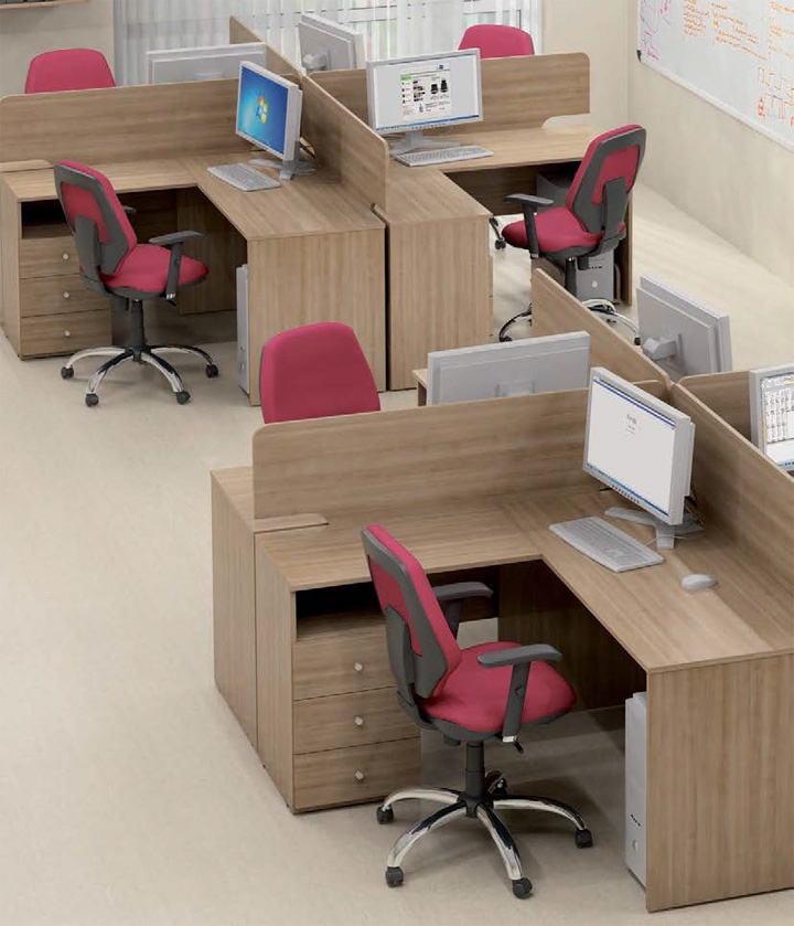 Сдвоенные рабочие места облегчают обмен информацией между сотрудниками и экономят пространство в офисе. Приставные столы удобны для посетителей. Персональные надстройки позволяют разместить текущую документацию на расстоянии вытянутой руки. А вместительные шкафы обеспечивают удобное хранение папок.