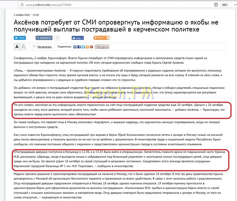 В это же время глава администрации Керчи Сергей Бороздин через Фейсбук распространяет информацию пресс-службы администрации Керчи, где последние компетентно заявляют о том, что деньги перечислены на счет самой девочки.