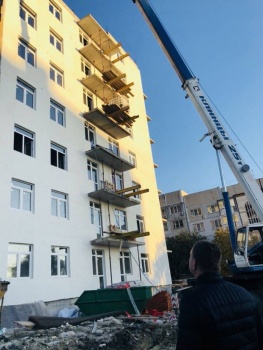 В Керчи строительство дома для депортированных граждан вышло на завершающий этап. Специалисты утепляют фасад, выполняют внутренние отделочные работы и остекление. Работы ведутся и в выходные дни.
