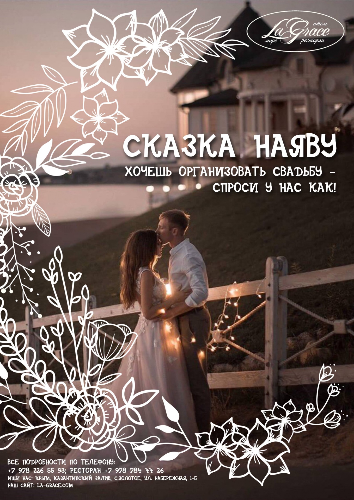 - при проведении свадьбы в ресторанно - отельном комплексе La Grace, романтический номер молодоженам в подарок;