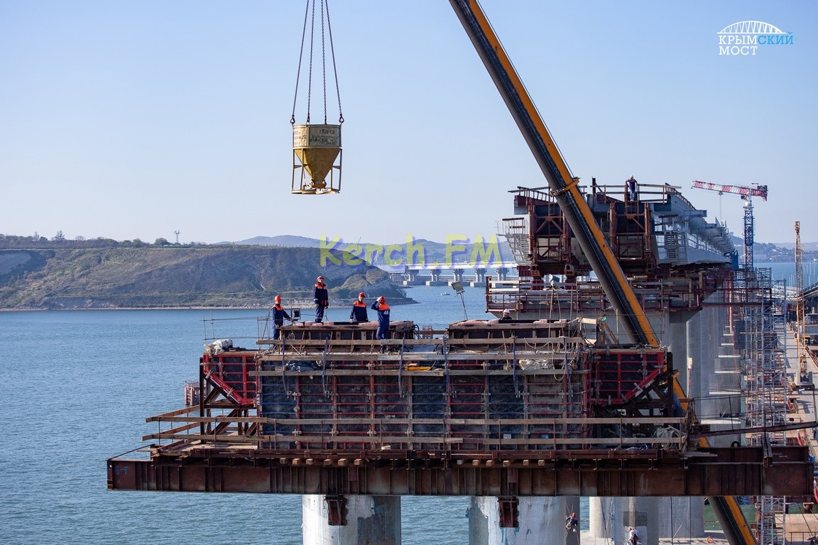 Основной оставшийся этап строительства железнодорожной части Крымского моста - установка пролётов. Суммарно на 8 строительных участках пролётами уже перекрыто более 15 километров трассы.