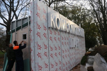 Напомним, будущий туалет в Комсомольском парке обшили фанерой